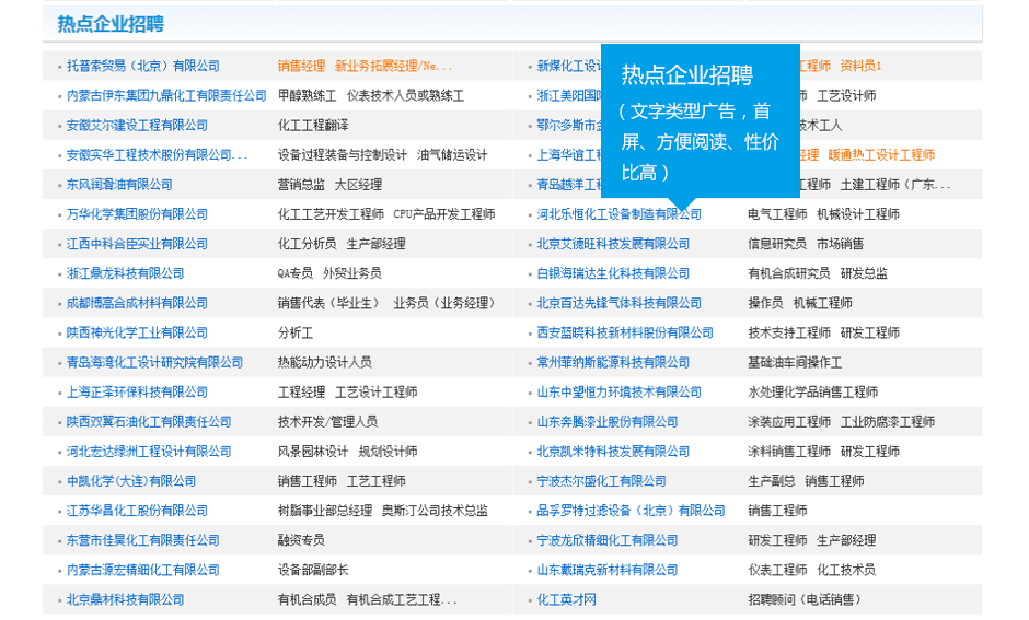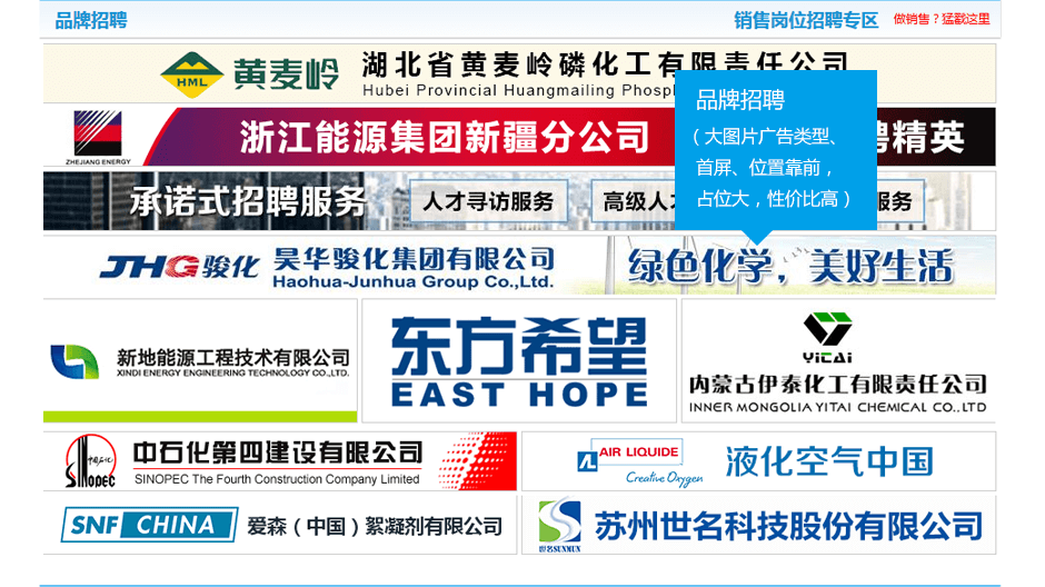 移動(dòng)端品牌招聘、熱點(diǎn)招聘、知名企業(yè)招聘等廣告類型,有效提升招職位的關(guān)注度。