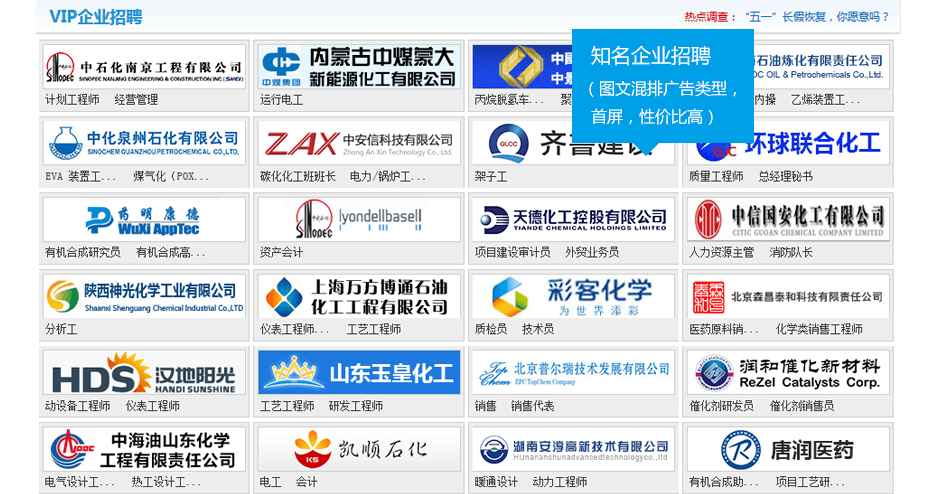 海報(bào),著重對(duì)企業(yè)進(jìn)行重點(diǎn)宣傳,以有效、醒目的特點(diǎn)為知名企業(yè)所喜愛,極大提升招聘職位的關(guān)注點(diǎn)及招聘效果。